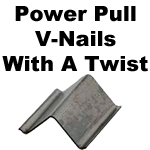 V-Nails with pulling Power. A built in twist for tighter joints.7mm 1/4" v-nails used with ITW/AMP, Putnam, Alfamacchine, Albor and Mingraf joining machines. Our v-nails are already in use industry wide. Manufactured by us to our exacting specifications using the finest high grade steel we guarantee they will work in your machine (4000 v-nails to a pack) Recommended for most woods.